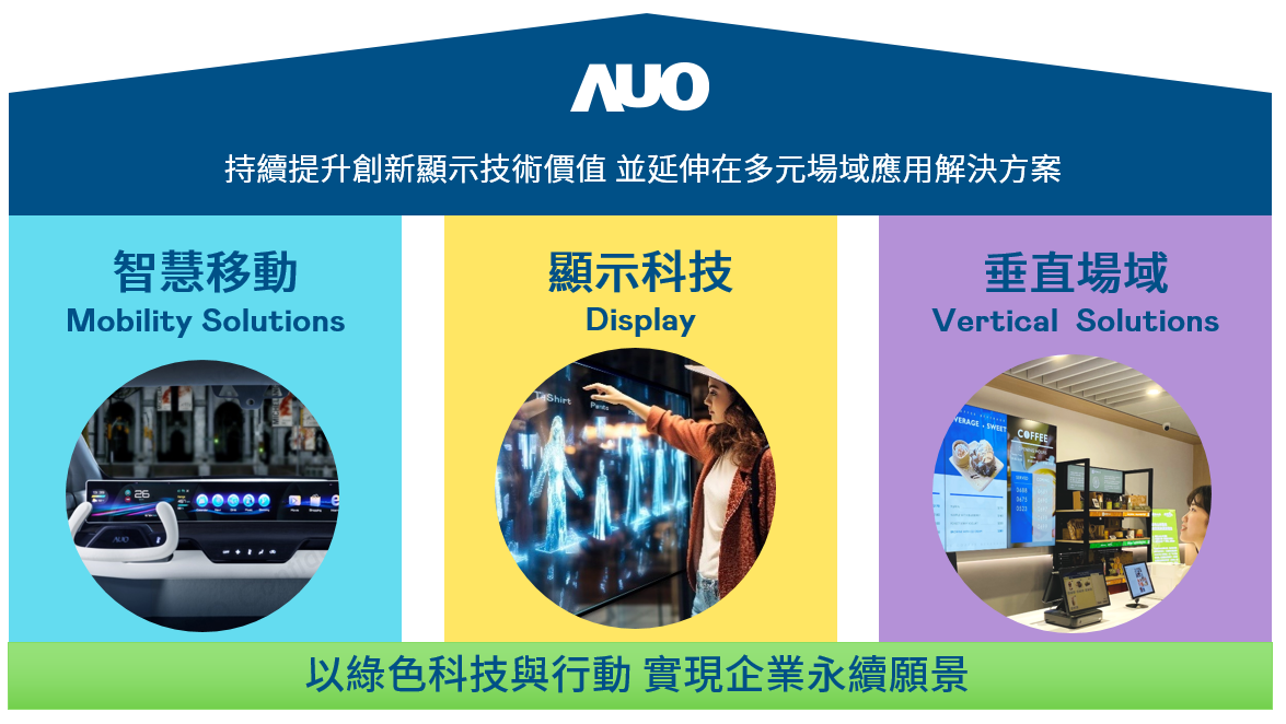 我們持續推動「雙軸轉型」,在精進顯示技術附加價值(Go Premium),與深化垂直市場應用(Go Vertical)的策略下,對應彩神Vll官网的優勢競爭力與趨勢,我們奠定顯示技術、智慧移動、垂直場域三大永續營運支柱,在顯示技術領域的根基之上,延伸布局多元場域應用解決方案。將先進顯示科技助力智慧移動及垂直場域發展,並以綠色科技與行動為實踐,在轉型之路上貫徹永續經營之願景。